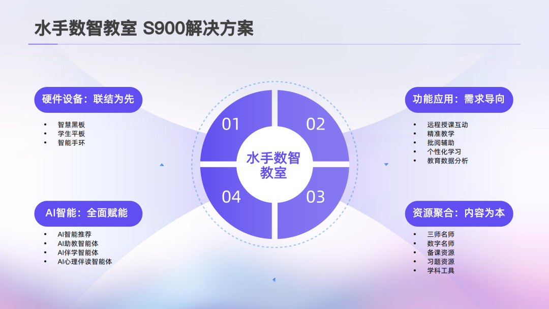 方案的核心产品包括水手数智教室 S900 和 AI 学伴 S300。